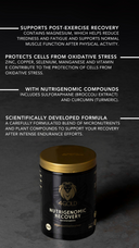 Nutrigenomic Recovery is designed to support recovery after exercise with targeted nutrients like magnesium, which helps reduce tiredness and supports muscle function. Zinc contributes to normal DNA synthesis, while vitamins B2, E, copper, manganese, selenium and zinc help protect cells from oxidative stress. With sulforaphane and curcumin—plant compounds studied for their role in recovery—this formula supports an efficient recovery process.