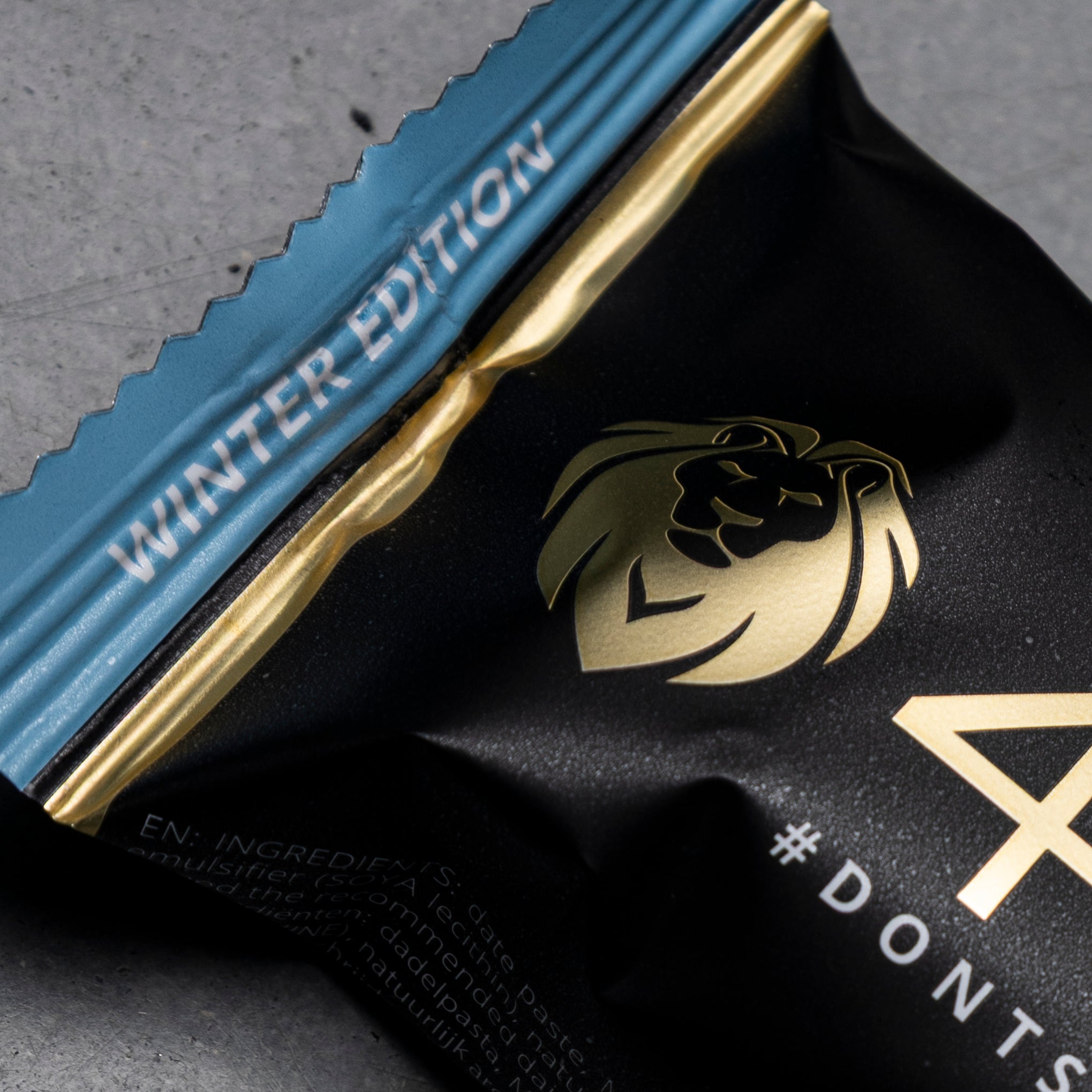 Pasta de dátil, proteína de leche, pasta de cacahuete, azúcar invertido, azúcar, masa de cacao, crujientes de proteína de leche, cacahuetes, almendras, grasa de coco, manteca de cacao, emulgente (soja lecitina), aroma natural: vainilla.
